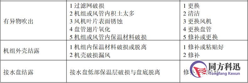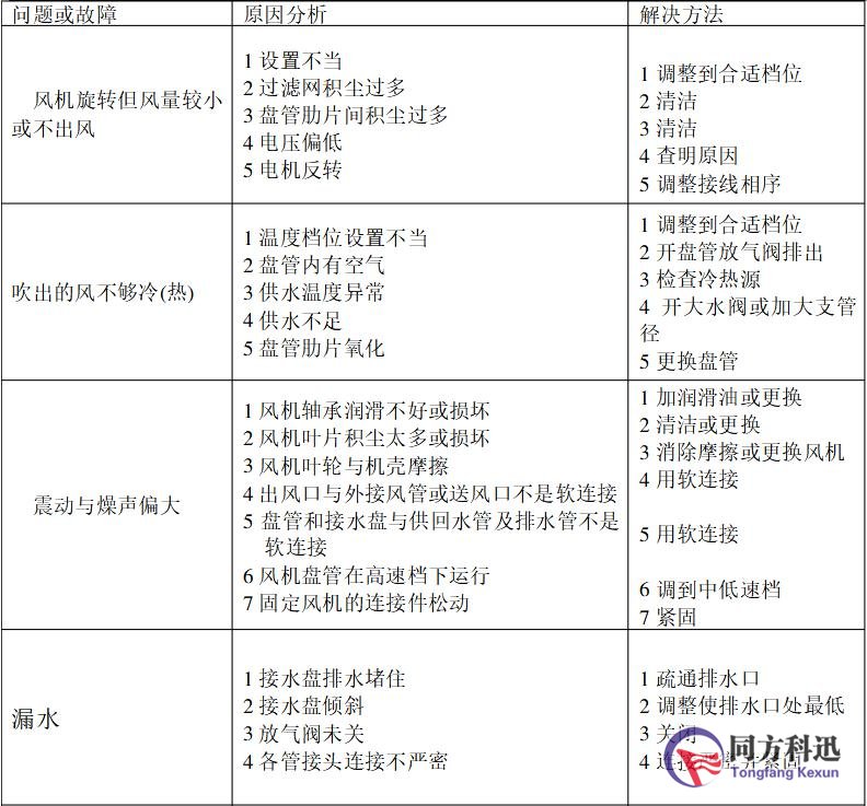 圖表1:風(fēng)機(jī)盤管常見(jiàn)問(wèn)題和故障的分析與解決方法: