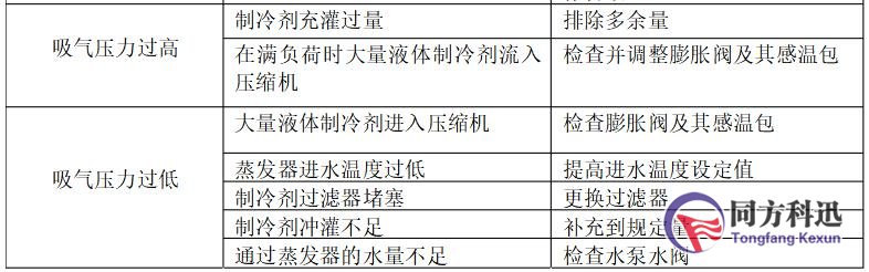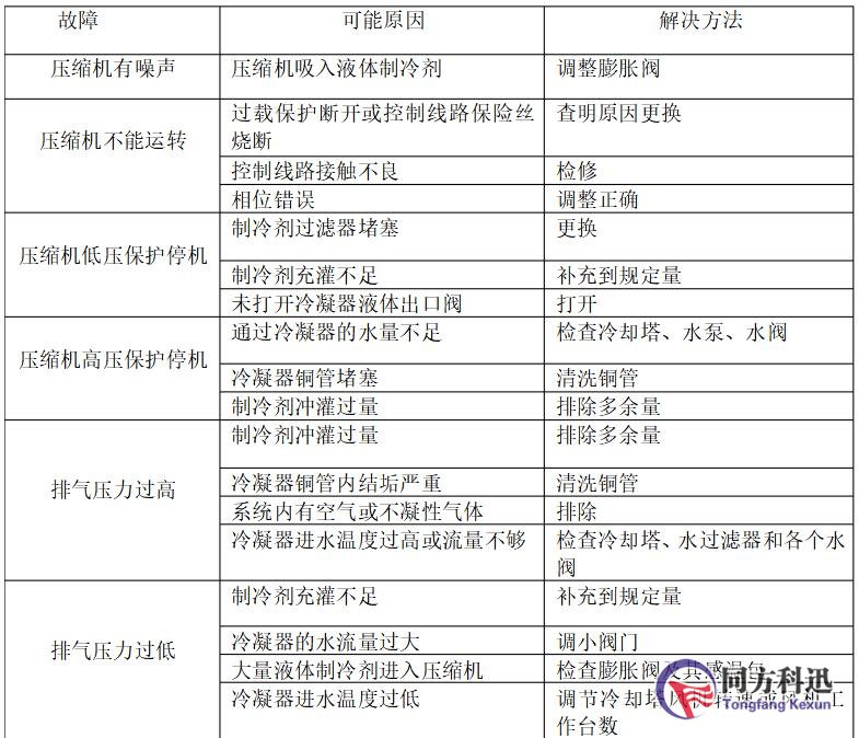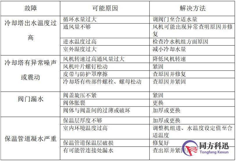 表三.冷水系統(tǒng)常出現(xiàn)的問(wèn)題