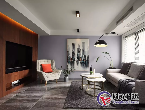 3、如果客、餐廳在同一面,所以將出風口做在另一面墻的吊頂上,可以同時滿足兩個使用環境。